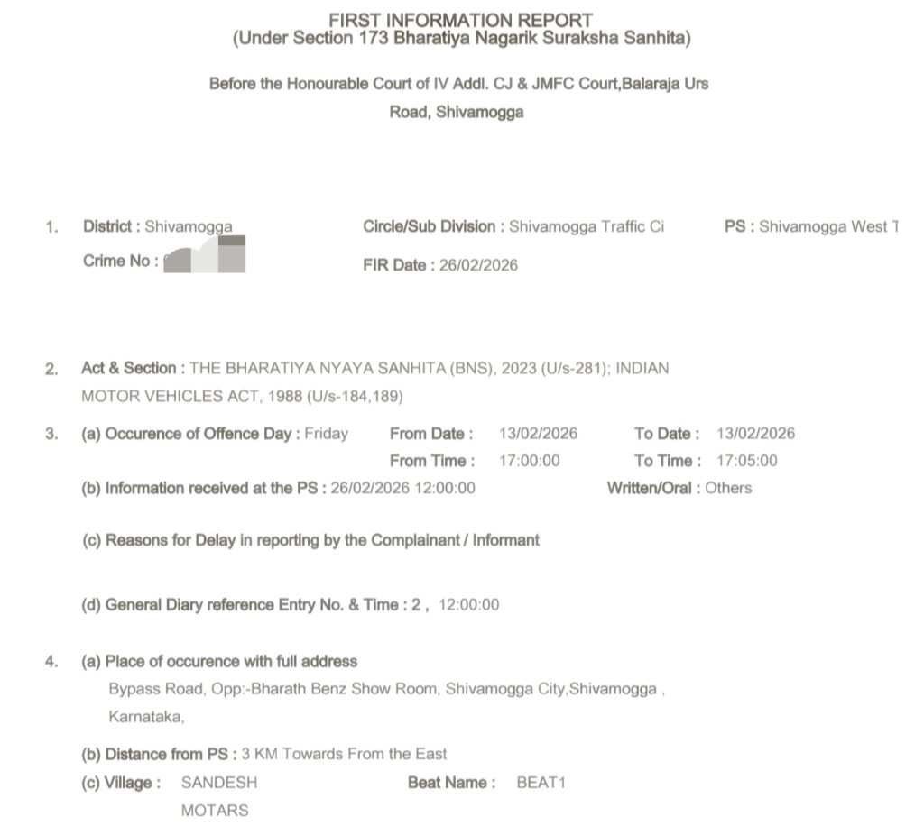 .ದೂರುದಾರರ ಮಾಹಿತಿಯಂತೆ, ಹೊಂಡಾ ಆಕ್ಟಿವಾ ವಾಹನವನ್ನು ಬಳಸಿಕೊಂಡು ಕೆಲವು ಯುವಕರು ರಸ್ತೆಯಲ್ಲಿ ವೀಲಿಂಗ್ ಮಾಡುತ್ತಾ ಸಂಚಾರಕ್ಕೆ ಅಡಚಣೆ ಉಂಟುಮಾಡಿದ್ದಾರೆ. ಈ ವೇಳೆ ಇತರ ವಾಹನ ಸವಾರರು ಹಾಗೂ ಪಾದಚಾರಿಗಳ ಜೀವಕ್ಕೆ ಅಪಾಯ ಸಂಭವಿಸಬಹುದಾದ ಪರಿಸ್ಥಿತಿ ನಿರ್ಮಾಣವಾಗಿತ್ತು.ಘಟನೆಯ ವಿಡಿಯೋ ಸಾಮಾಜಿಕ ಜಾಲತಾಣಗಳಲ್ಲಿ ಹರಿದಾಡಿದ ಬಳಿಕ ಪೊಲೀಸರು ಪ್ರಕರಣ ದಾಖಲಿಸಿಕೊಂಡು ಬೈಕ್ ಅನ್ನು ವಶಕ್ಕೆ ಪಡೆದಿರುತ್ತಾರೆ ಚಾಲನೆ ಮತ್ತು ಸಾರ್ವಜನಿಕ ಸುರಕ್ಷತೆಗೆ ಧಕ್ಕೆಯುಂಟುಮಾಡಿದ ಆರೋಪದಡಿ ಕ್ರಮ ಕೈಗೊಳ್ಳಲಾಗುತ್ತಿದೆ ಎಂದು ಪೊಲೀಸರು ತಿಳಿಸಿದ್ದಾರೆ.ಸಾರ್ವಜನಿಕರು ಸಂಚಾರ ನಿಯಮಗಳನ್ನು ಪಾಲಿಸಿ ಸುರಕ್ಷಿತವಾಗಿ ವಾಹನ ಚಲಾಯಿಸುವಂತೆ ಪೊಲೀಸ್ ಇಲಾಖೆ ಮನವಿ ಮಾಡಿದೆ.