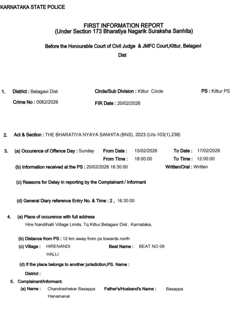 ಗ್ರಾಮದ ಸಮೀಪದ ಮೆಕ್ಕೆಜೋಳ ಗದ್ದೆಯಲ್ಲಿ ಅವರ ಶವ ಪತ್ತೆಯಾಗಿದ್ದು, ಸ್ಥಳೀಯರಲ್ಲಿ ಆತಂಕದ ವಾತಾವರಣ ನಿರ್ಮಾಣವಾಗಿದೆ. ಘಟನೆ ಕಿತ್ತೂರು ಪೊಲೀಸ್ ಠಾಣಾ ವ್ಯಾಪ್ತಿಯಲ್ಲಿ ದಾಖಲಾಗಿದ್ದು, ಪೊಲೀಸರು ತನಿಖೆ ಕೈಗೊಂಡಿದ್ದಾರೆ.