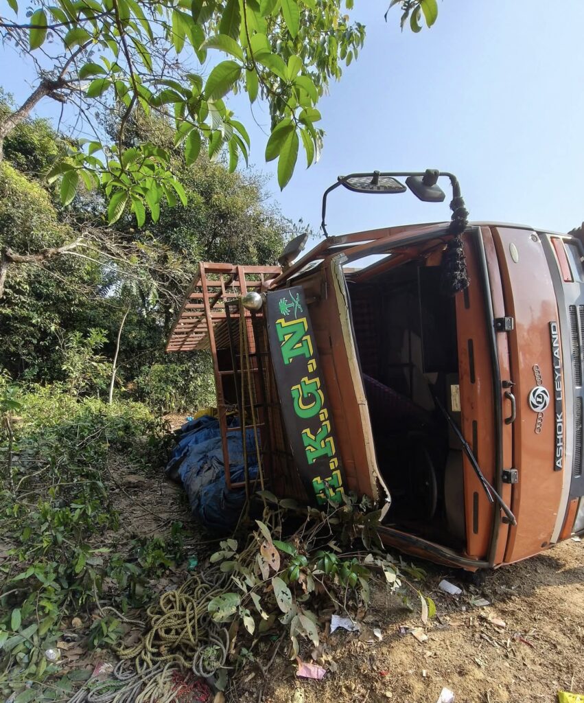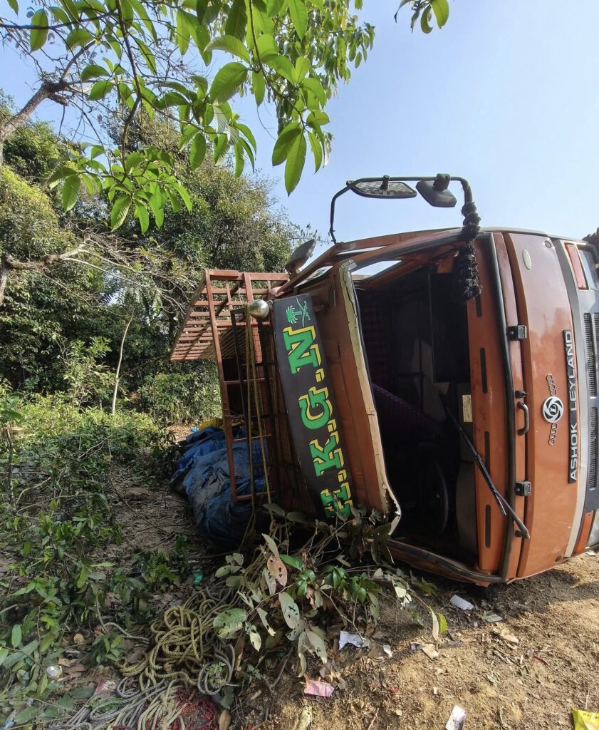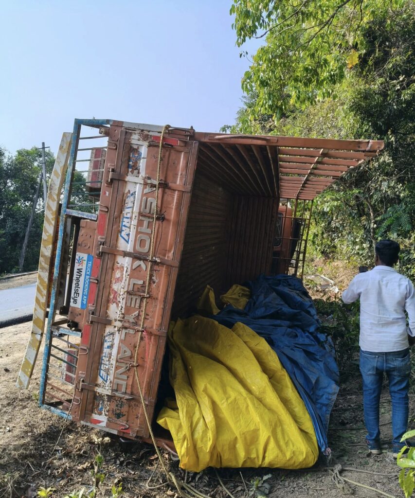 ಮಾಹಿತಿಯ ಪ್ರಕಾರ, ಒಣ ಮೆಣಸು ತುಂಬಿಕೊಂಡು ತೆರಳುತ್ತಿದ್ದ ಲಾರಿ ಹಿಲಕುಂಜಿ ಬಳಿ ತಿರುವಿನಲ್ಲಿ ಚಾಲಕನ ನಿಯಂತ್ರಣ ತಪ್ಪಿ ರಸ್ತೆ ಬದಿಯ ತಗ್ಗಿನಲ್ಲಿ ಉರುಳಿದೆ. ಅಪಘಾತದ ಪರಿಣಾಮ ಲಾರಿ ಬದಿಗೆ ಮಲಗಿದ ಸ್ಥಿತಿಯಲ್ಲಿ ಕಂಡುಬಂದಿದೆ. ಲಾರಿಯಲ್ಲಿ ಸಾಗಿಸುತ್ತಿದ್ದ ಒಣ ಮೆಣಸಿನ ಚೀಲಗಳು ಚದುರಿಕೊಂಡಿದ್ದು, ವಾಹನಕ್ಕೆ ಭಾಗಶಃ ಹಾನಿಯಾಗಿದೆ.