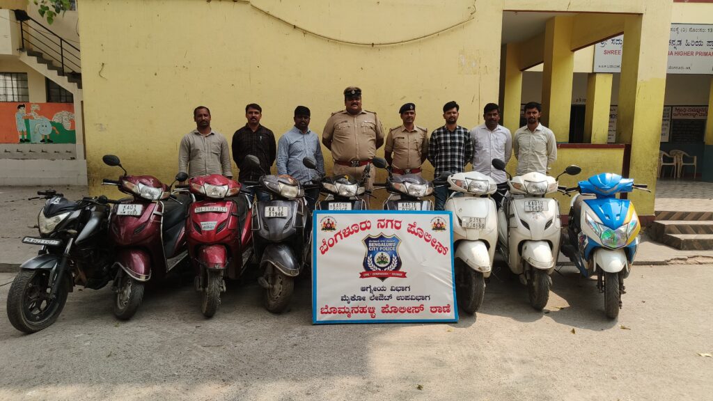 ಬೆಂಗಳೂರು: ನಗರದ ವಿವಿಧ ಭಾಗಗಳಲ್ಲಿ ದ್ವಿಚಕ್ರ ವಾಹನಗಳನ್ನು ಕಳವು ಮಾಡುತ್ತಿದ್ದ ಕುಖ್ಯಾತ ಕಳ್ಳನೊಬ್ಬನನ್ನು ಬೊಮ್ಮನಹಳ್ಳಿ ಪೊಲೀಸರು ಬಂಧಿಸುವಲ್ಲಿ ಯಶಸ್ವಿಯಾಗಿದ್ದಾರೆ. ಬಂಧಿತನಿಂದ ಸುಮಾರು ₹5 ಲಕ್ಷ ಮೌಲ್ಯದ 10 ದ್ವಿಚಕ್ರ ವಾಹನಗಳನ್ನು ವಶಪಡಿಸಿಕೊಳ್ಳಲಾಗಿದ್ದು, ಈ ಮೂಲಕ 10 ಕಳವು ಪ್ರಕರಣಗಳು ಪತ್ತೆಯಾಗಿವೆ.